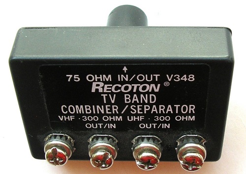 Many years ago TV sets had separate inputs for VHF and UHF. The UHF/ VHF Separator Joiner was developed to separate the UHF and VHF signals coming from the antenna to feed the separate inputs for two tuners. There were also UVSJs that would combine two 300 ohm antennas for a 75 ohm input TV. Some TVs had two 2-screw 300 ohm inputs, and some had a 75 ohm coax input for VHF and a 2-screw input for UHF where you could mount a UHF loop.