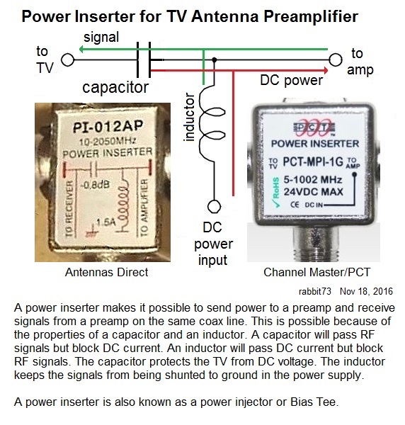 The power inserter is part of the preamp system. It makes it possible to send the DC power up to the preamp AND send the signals down to the TV on the same coax line.