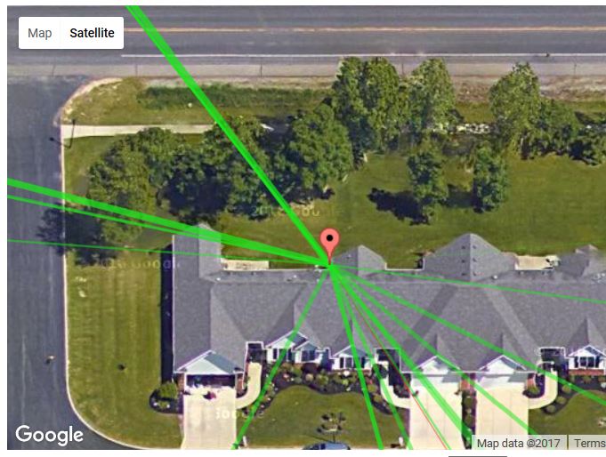I will pick up the antenna with the reflector in case we need it. I took a couple new photos of the roof while running a load over today. As noted right now beyond those young trees there is open field and a golf course to the north. There will be houses being built across Whitehaven in the next several years which may impact me once they are in place. I can hope that the gaps in the houses will thread the needle for my directional settings.