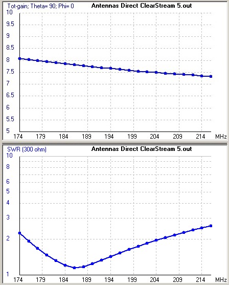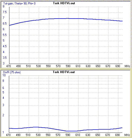 A 4NEC2 analysis of the HDTVi tends to support the assumptions of flat gain and favorable SWR.
