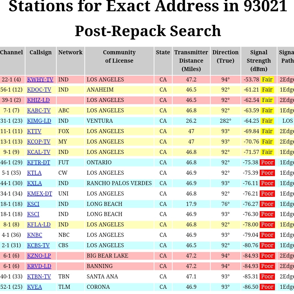 Also, while you're on Rabbitears.Info website, check out the TV market listings for Los Angeles, and look specifically at the channels you want to receive in detail, especially the Longley-Rice maps. Those maps will really tell you how good you can expect your reception to be.