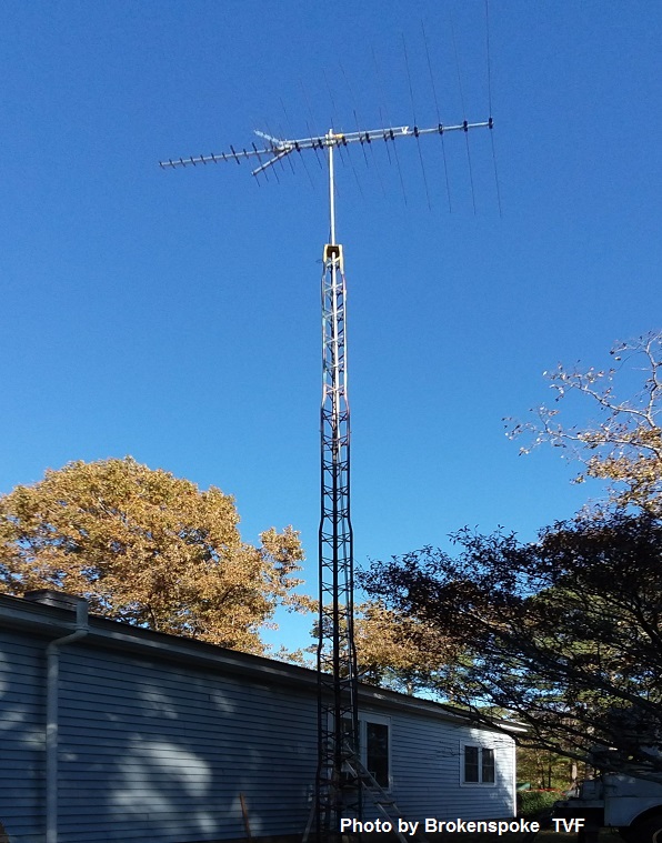 Thanks Rabbit73, I don't mind at all. Still got a couple things to finish this weekend when the rain stops. It did well in the high winds we had for two days. It is attached to the house and of course the base I still have guy lines to attach near the top and will add a preamp while I am up there.