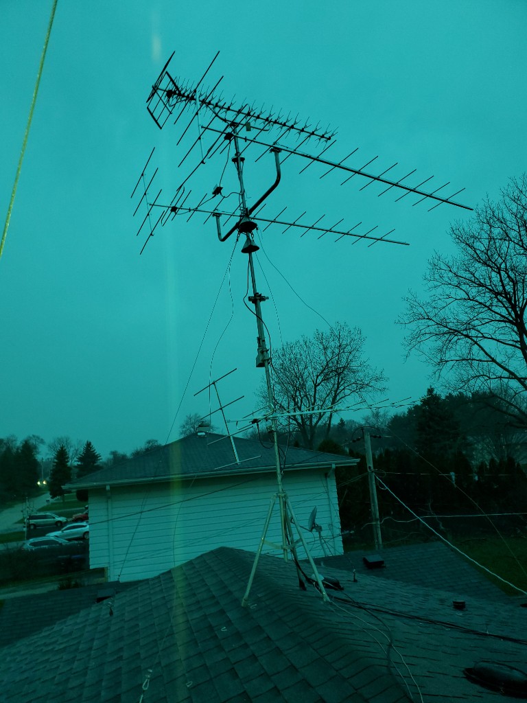 How does it work? I don't know yet. I had a storm creeping on me during the final mounting. I had to barely tighten up the mast clamp, wait for the rain squall the stop, jump back on the roof and try to re angle the antenna in the dark. The 40 mile-an-hour gusts made it difficult. I'll have to get back on the ladder tomorrow morning check my connections.