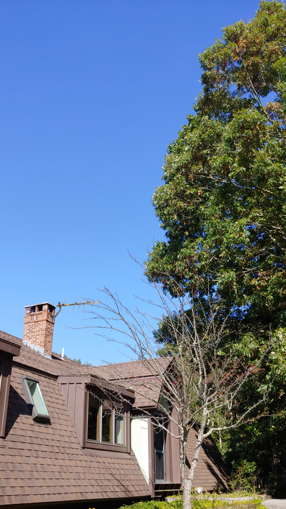 I did a quick photoshop to see what the 751 would look like mounted at the highest point (chimney) either with the supplied mast or with a taller mast. No mast will be tall enough to get above the tree line.