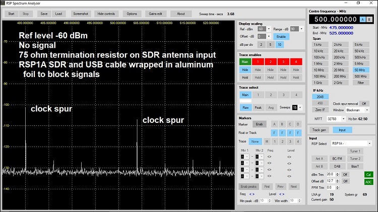 Then I decided to just wrap the plastic SDR enclosure in foil and turn On the Clock spur removal