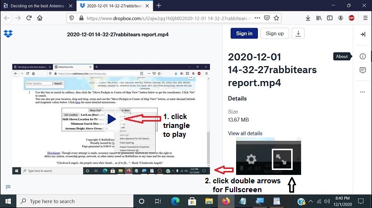 Sometimes the video takes a long time to download from Dropbox. Wait until the screen looks like this before you click on the Play triangle:
