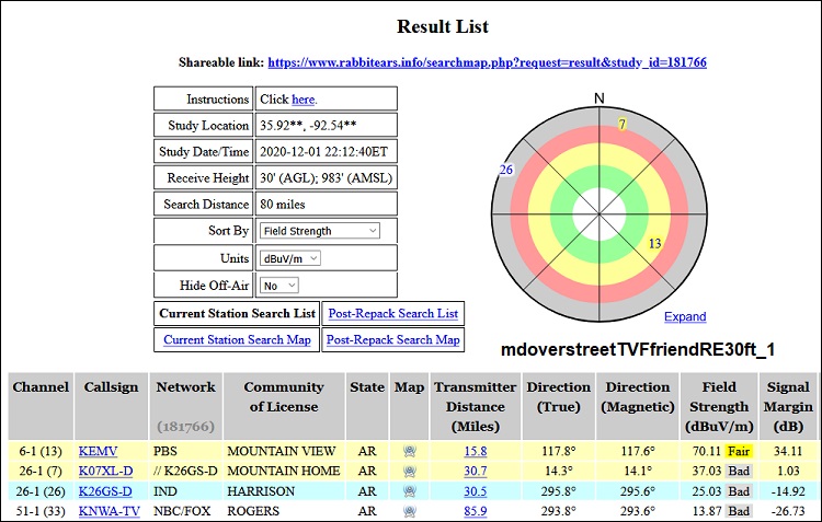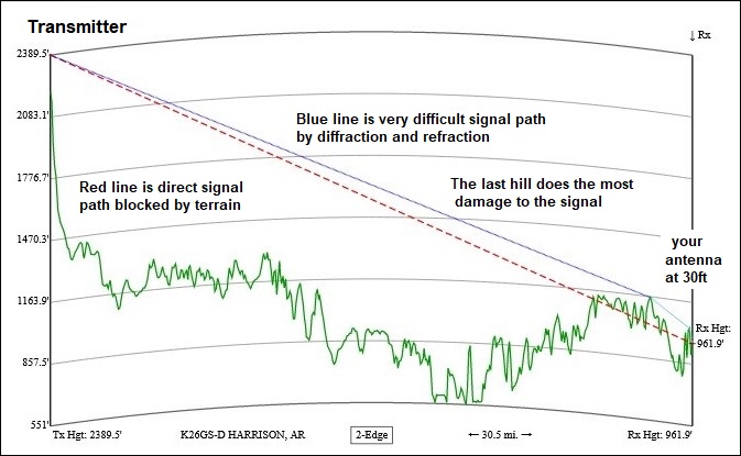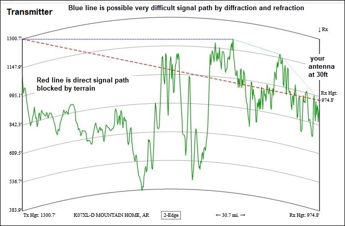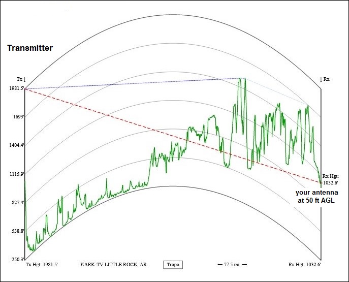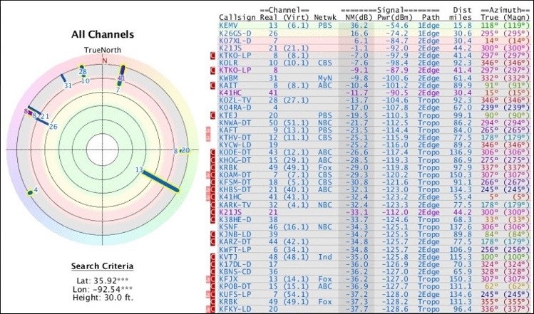 Wow! That's a lot of information there. Very interesting! Just for giggles, would you mind making one of those reports for a Little Rock channel? I guess pick KARK since that was one he was wanting to receive. I'm kind of curious to find out where the Little Rock stations are being completely blocked.