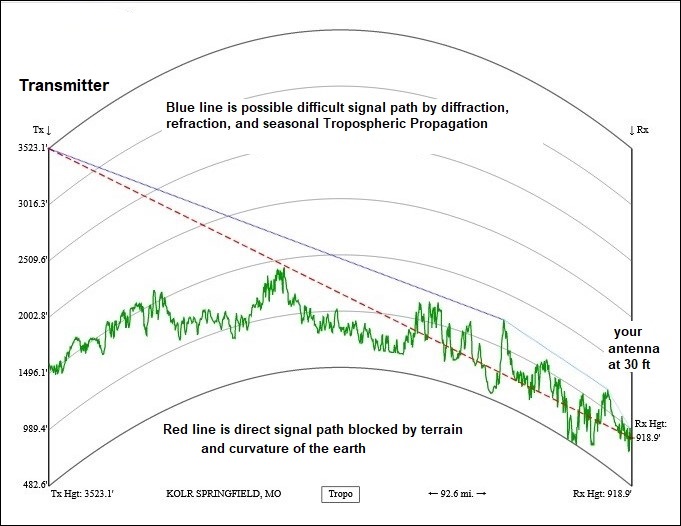 He said his antenna is at about 25ft and pointing in the general direction of Springfield. How in world is he receiving KTHV like that? Is the KTHV signal hitting the mountains and scattering and he just so happens to be able to grab hold of one?