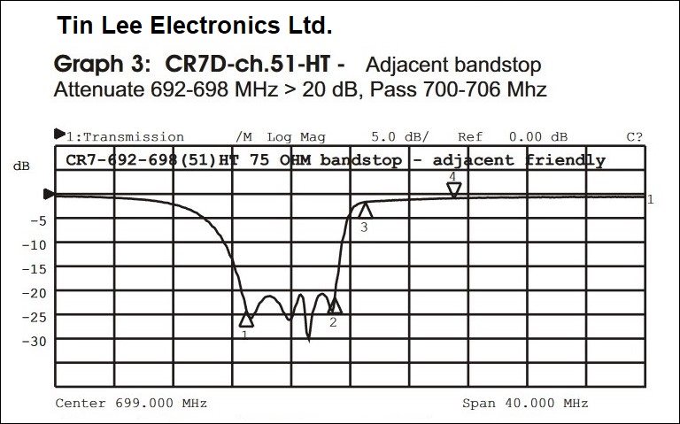 CR7D-HT contains 4 notches which can be combined for deep and wide notch or 4-6 MHz stopband. Example graph 2 shows video carrier notch, 1 Mhz wide. Example graph 3 shows 6 MHz stopband. http://www.tinlee.com/PDF/CR7-HT%20s...info%20sht.pdf