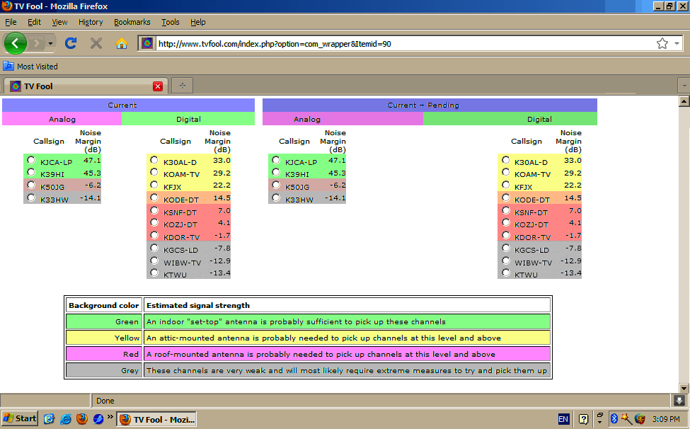 Unable to see the color differences clearly in the current TV Signal Locator / Interactive TV Coverage Browser. I'm not color blind, but the color scheme being used is just too washed out to see the color shades clearly on all the monitors I've got, both LCD and CRT.