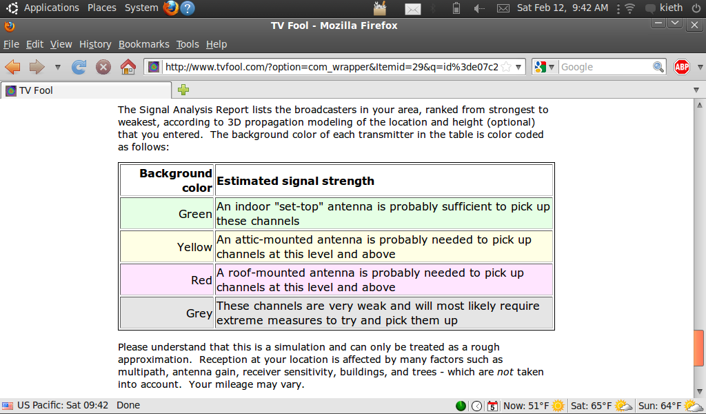 I use Firefox most of the time, true, for security reasons rather than aesthetics. But it does display colors clearly on most websites, and I'm pretty sure that Mozilla didn't put in special code to say.....except for TVfool. That said, the netbook runs Linux, where browser choices are quite limited. And it is worth mentioning that the various Mozilla clients have a large percentage of the market, and are free.