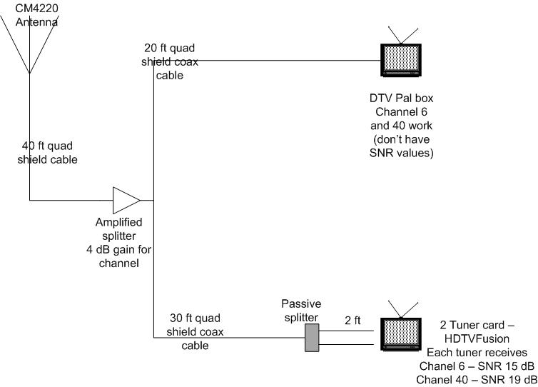 One last note, I have not noticed any issues with the signal being too strong by using both pre-amp and amplified splitter.