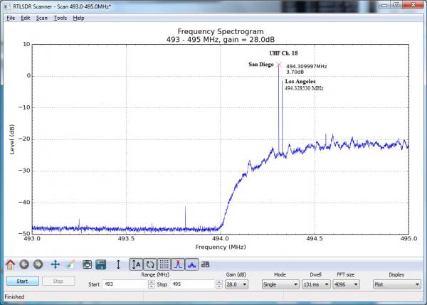 The next step up is the RF Explorer, a small hand-held spectrum analyzer
