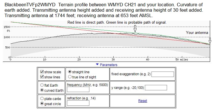I did a terrain profile that shows how the curvature of the earth blocks the direct signal and causes it to graze the surface and be subjected to ground clutter interference.