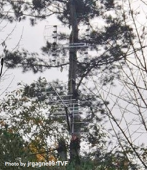 So I have the opportunity to borrow a 70-foot boom-style man-lift to do some painting and roofing jobs around the house. While I have it, I figure I might as well put an antenna as high as I can in one of my tall pine trees. My TV fool report indicates about a 2.5 dB improvement in WFFF at 75 feet in the pine tree, vs. 30 feet AGL on my roof. I plan to vertically stack two HDB8Xs to get the most bang for my buck. With that stacked configuration, in the hottest hot spot on my roof, I have never been able to get better than 20% reception reliability for WFFF. I'm hoping I'll do better than that up in that pine tree.