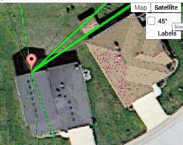 You don't have a signal clearence problem, as far as I can tell, with the eave mount on the back of the higher roof where the eave mount would be fastened. That point has an unobstructed view to the NE, which is why that would be the best location for the C2V.