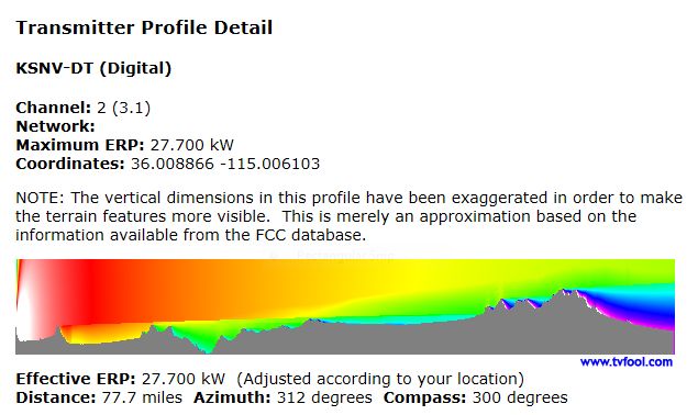 Eight weeks ago, I came here to get help to receive as many Las Vegas VHF stations as I could. I was most interested in channel 3 (for Antenna TV on 3.3 -real 2) and 13. Here is my TV Fool plot.