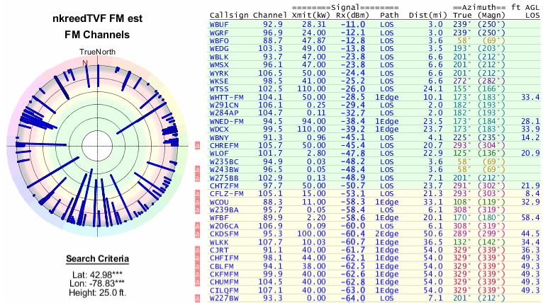 Going on the basis of Signal Power dBm in the report, WNLO is -17.6 dBm, and adding 10 dB antenna gain gives -7.6 dBm.