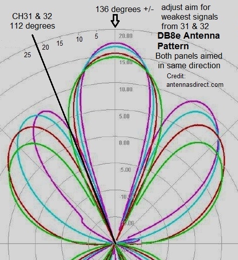 It looks promising that (maybe) ganging two DB-8e antennas would improve the signal over 50% on several channels enough to get a picture.