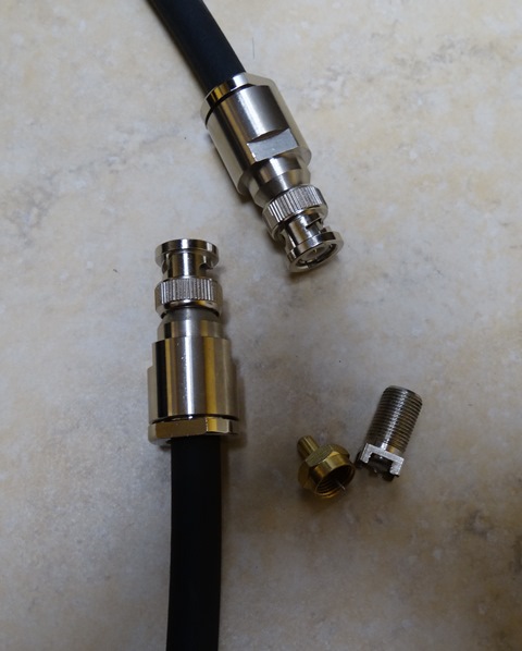 A friend hands me a roll of new cable and asks me if I want it, "of course" I say. I thought it might be RG-11 or something like it, but the ends are not "F" type. They are more like a BNC twist on type.