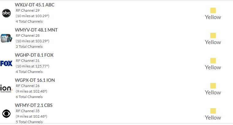 Zip code is 27370, all channels are UHF