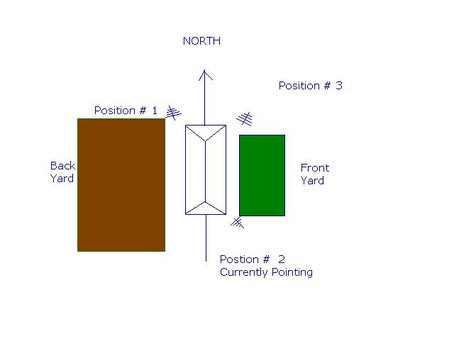 Should I position it towards North-ish (Position #3 on my attached sketch) or E-SE (existing C4 orientation ) ?