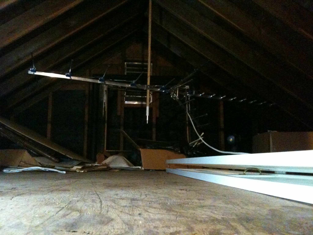 Pic of the attic setup attached - after that was taken, the antenna was levelled off and a hole was drilled for the coax a few feet back from the antenna.